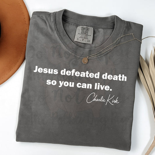 Jesus defeated death so you can live -Charlie kirk tee